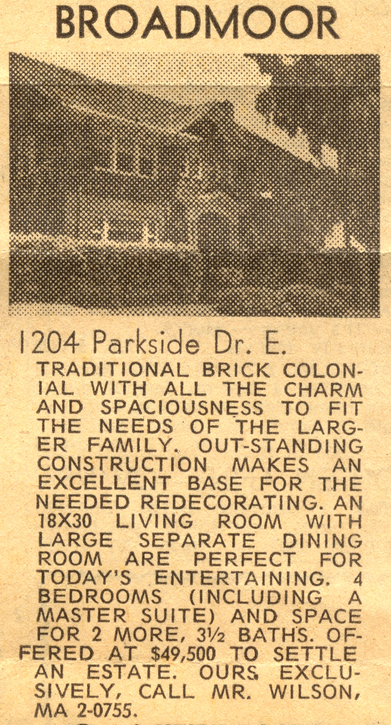 Newspaper real estate classified ad from 1967 after Rose's death.