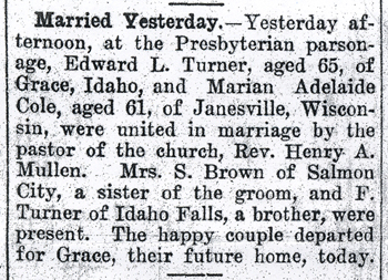 married in Weiser in 1908. Since son Edward had apparently left the