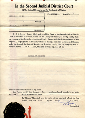 issued the divorce decree. I flew to Nevada to visit him