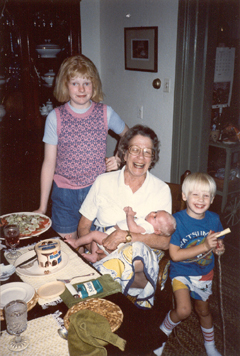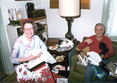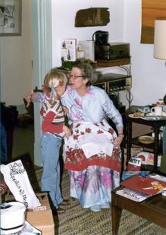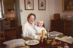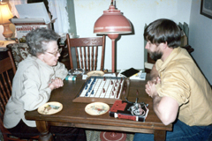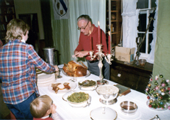 holidays 1983 with son Greg at the living room game table.